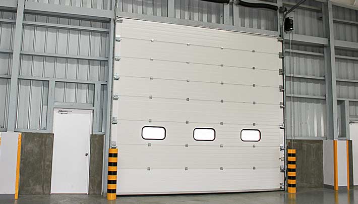工業門通常應用在廠房通道上,讓人,車和物品等通過,滿足廠區作業需求,工業滑升門采用扭簧平衡門體開啟平衡,有時候通道不需要頻繁的打開,那么旭峰設計了帶小門的工業門,不需要車輛或其他通過時,可以小門通過,工業門小門也可以做消防通道使用。